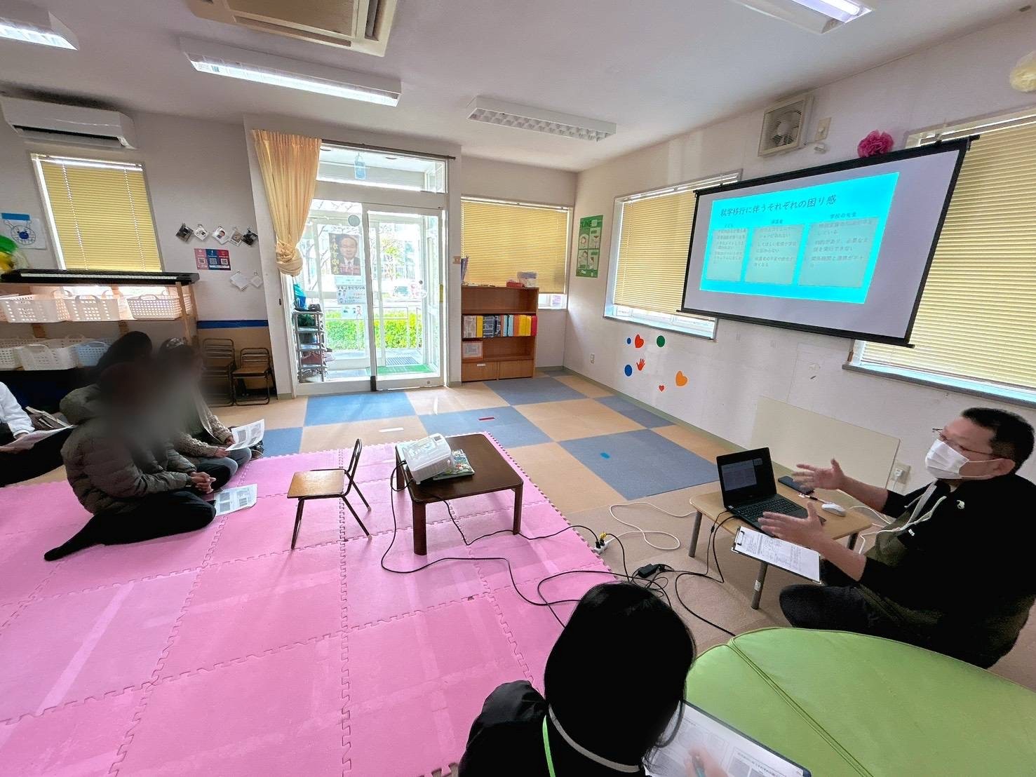 親の会(ことりの広場)を開催しました! 12月21日(土)に、今年も親の会(ことりの広場)を開催しました。 就学に向けてのお話しや、お茶を飲みながら普段の悩みなどを保護者同士や支援者とお話しする機会となりました。 今年はリラックスした時間もご提供したいと思い、ハンドマッサージやヘッドスパも体験していただきましたよ。 親の会は毎年開催しておりますので、来年も皆さまのご参加をお待ちしております。